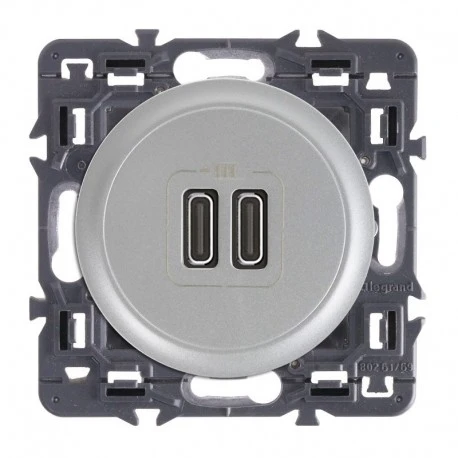 descriptif mécanisme réf. 067466 : Chargeur USB (x 2) 230 V – Type-C – 3 A / 15 W – 2 USB 3000 mA